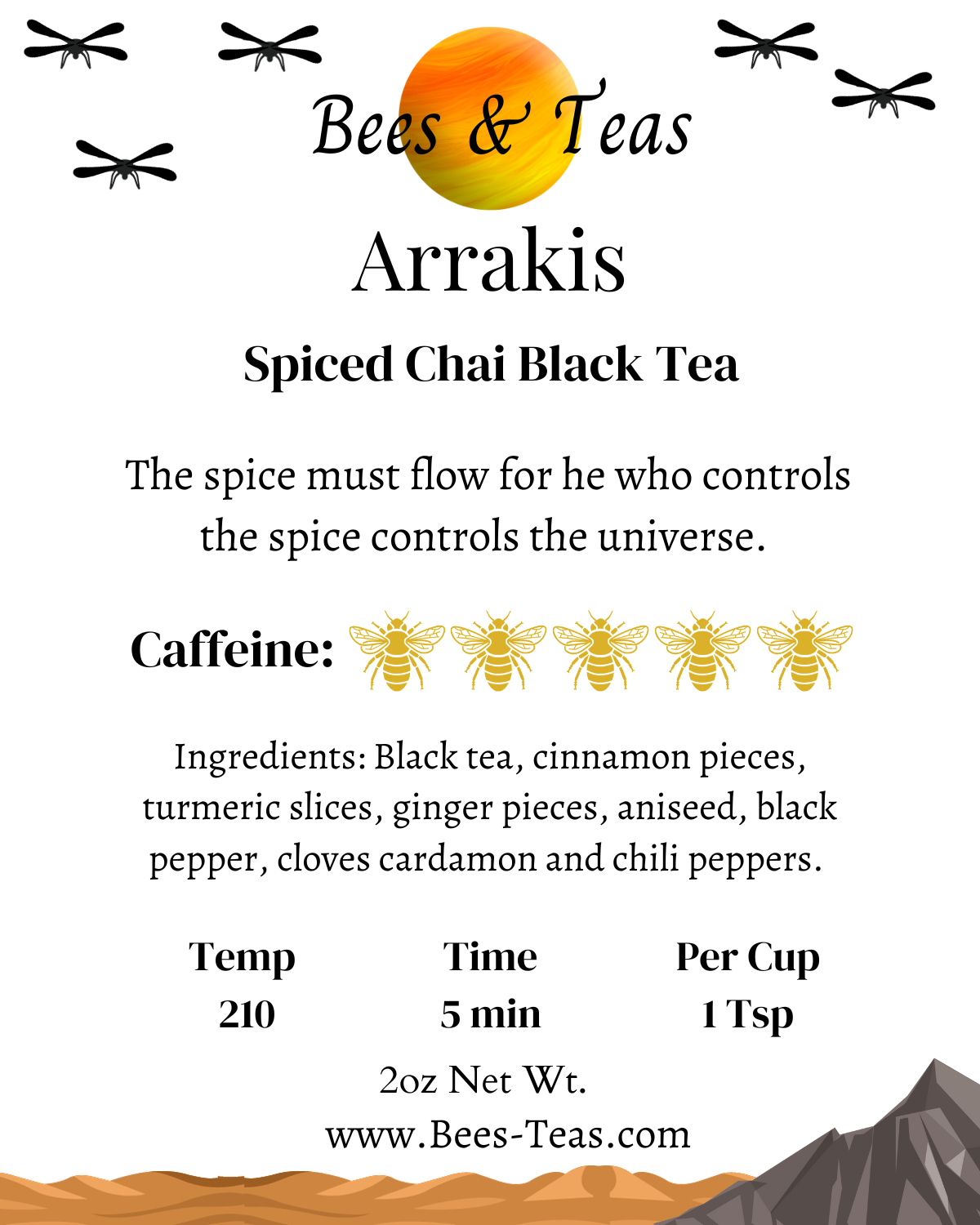 Ingredients: black tea, cinnamon pieces, turmeric slices, ginger pieces, aniseed, black pepper, cloves, cardamom, red pepper chilis.