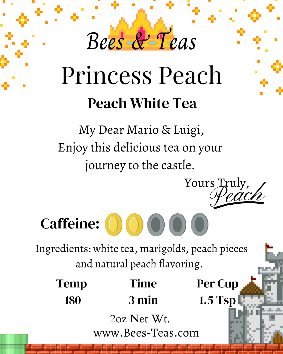 Join your favorite plumbers on a journey to rescue the princess with this delicious and sweet white peach tea.
