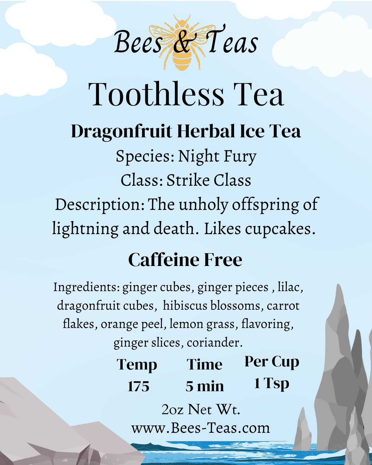Inspired by the best dragon in animated history Toothless tea brings the sweetness of dragonfruit and the spice of chai together. Sweet, spiced and delightful!