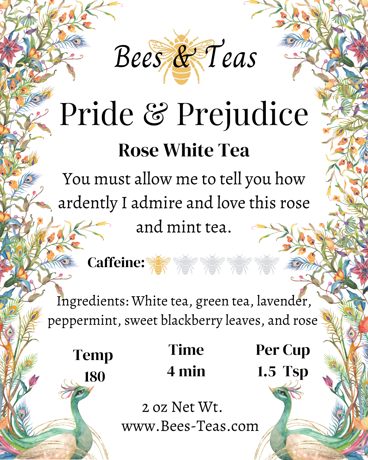 Dream of Pemberly with this white and green tea blended with roses and mint. Perfect for visiting friends and grand assemblies.